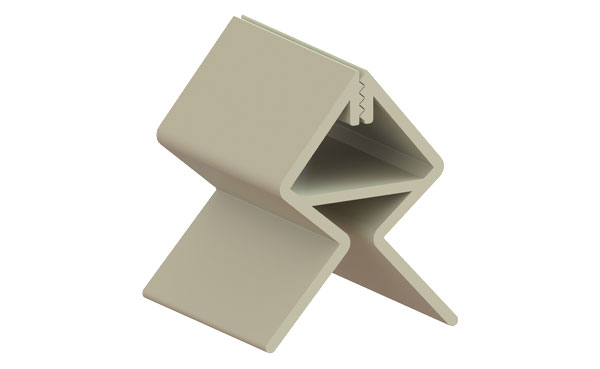 The depth of the 10MOOC is 1″ and the profile has a square edge. Fabric is tucked into the track at the outside edge of an outside corner. The fabric can be stretched over this track at an outside corner to create a “seamless” look, or two fabrics can be tucked into the track to transition from one fabric to another. Edge wrapping of fabric is not required.